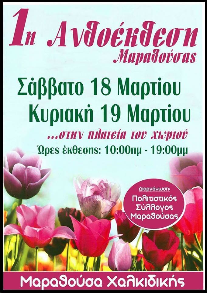 Την 1η Ανθοέκθεση οργανώνει ο Πολιτιστικός Σύλλογος Μαραθούσας το Σαββατοκύριακο 17 και 18 Μαρτίου 2017, στην πλατεία του χωριού.