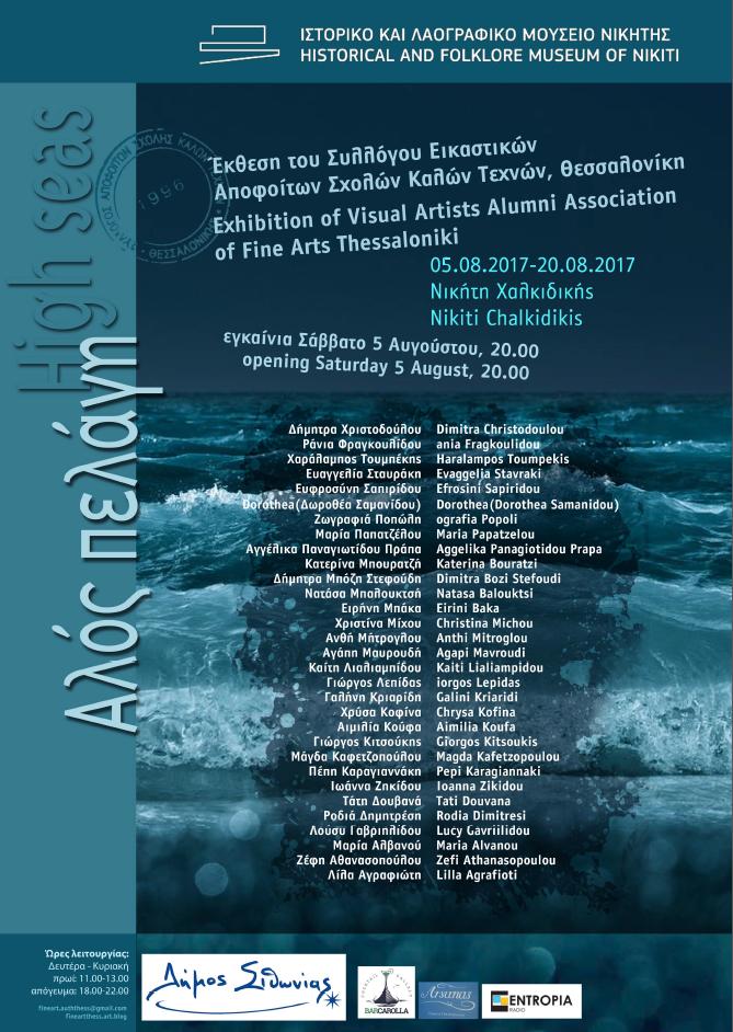 Ο Σύλλογος Εικαστικών Καλλιτεχνών Αποφοίτων Σχολών Καλών Τεχνών παρουσιάζει στo Ιστορικό και Λαογραφικό Μουσείο Νικήτης τη νέα του έκθεση με συμμετοχή 31 καλλιτεχνών, οι οποίοι δημιουργούν εικαστικά έργα έχοντας ως αφετηρία την ομηρική έκφραση «ἁλός ἐν πελάγεσσιν» της Οδύσσειας.