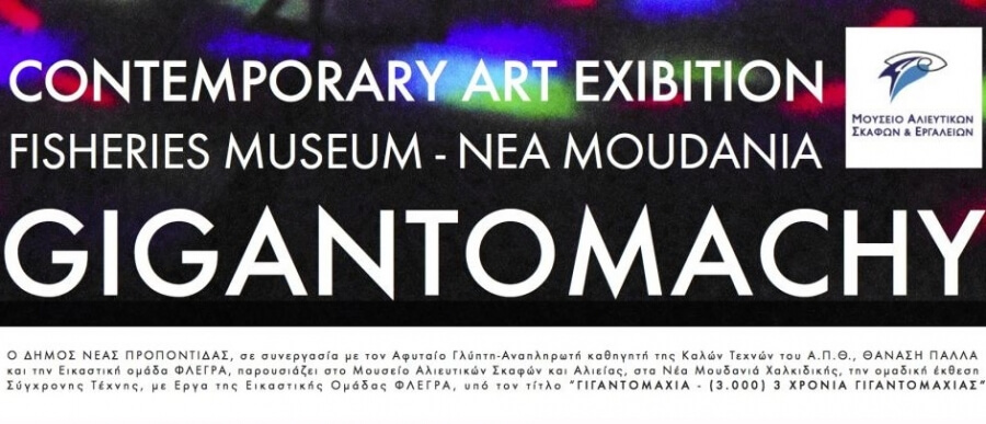 Η Εικαστική Έκθεση Σύγχρονης Τέχνης “ΓΙΓΑΝΤΟΜΑΧΙΑ” φιλοξενείται από τον Ιούλιο έως και τον Δεκέμβριο του 2017 στους χώρους του Μουσείου Αλιευτικών Σκαφών και Εργαλείων του Δήμου Νέας Προποντίδας στα Νέα Μουδανιά Χαλκιδικής, έτσι ώστε να είναι όλο το καλοκαίρι στην διάθεση όλων των Επισκεπτών της όμορφης και Φιλόξενης Χαλκιδικής μας και στην συνέχεια όλων των Σχολείων της Α΄βάθμιας και Β΄βάθμιας εκπαίδευσης του Νομού μας.