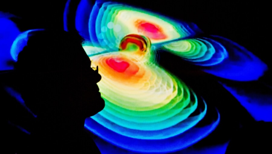 Photo: [epaselect epa05154716] The silhouette of a scientist against a visualisation of gravitational waves pictured during a press conference by the Max Planck Institute for Gravitational Physics (Albert Einstein Institute) at the Leibniz University in Hanover, Germany, 11 February 2016. US researchers say they have detected gravitational waves, which physicist Albert Einstein first described 100 years ago as 'ripples in the fabric of space-time.' Scientists from Caltech and the Massachusetts Institute of Technology (MIT) made the announcement in Washington and other locations around the world. There were immediate suggestions that the discovery could well win them the Nobel Prize in Physics. The signal detected with LIGO, an observatory with sites on both sides of the United States, was very clear and there was no room for doubt that it was direct evidence of the waves, said Bruce Allen, who is acting director at Germany's Max Planck Institute for Gravitational Physics. EPA/JULIAN STRATENSCHULTE
