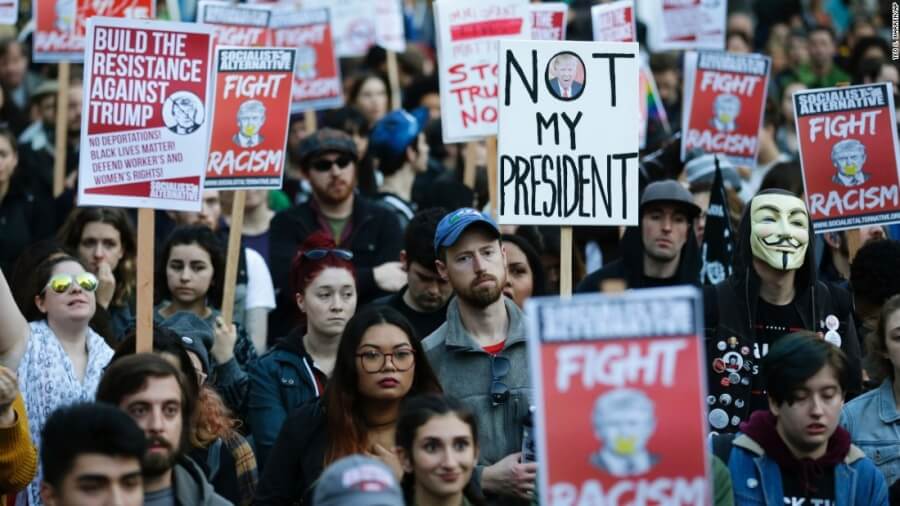 Πιστεύω πραγματικά ότι είμαστε ισχυρότεροι όταν είμαστε ενωμένοι», έγραψε στο Twitter η Χίλαρι Κλίντον, η αντίπαλος του Τραμπ στις προεδρικές εκλογές. Σύμφωνα με τον Νιλ Λέβισκ, εκτελεστικό διευθυντή του Ινστιτούτου Πολιτικής του Νιου Χάμσαϊρ, ο Ντόναλντ Τραμπ «δεν έχει φανεί ποτέ να ανησυχεί ιδιαίτερα για τους ανθρώπους που του αντιτίθενται». Όμως οι κοινοβουλευτικοί, τους οποίους ο Τραμπ χρειάζεται για να πετύχει τους στόχους τους ενδέχεται να είναι πιο ευαίσθητη στη μαζική κινητοποίηση κατά του νέου προέδρου, πρόσθεσε. [ΑΠΕ-ΜΠΕ]