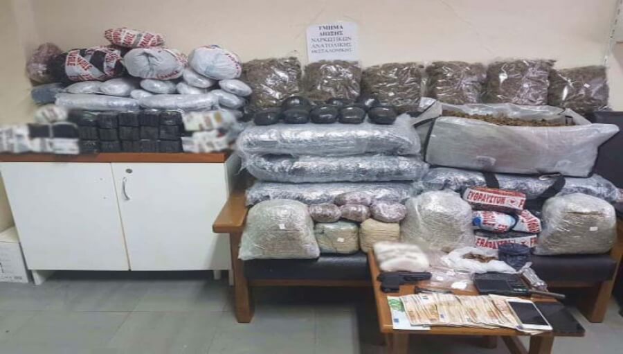 Σε έρευνες που πραγματοποιήθηκαν στο σπίτι όπου διέμεναν, αλλά και σε αυτοκίνητο που χρησιμοποιούσαν, βρέθηκαν συνολικά 88 κιλά και 988 γραμ. κάνναβης, από τα οποία τα 12,4 κιλά ήταν ειδικά κατεργασμένα (σοκολάτα) και συσκευασμένα σε 23 δέματα, όπως επίσης 554,8 γραμ. κοκαϊνης και 384 γραμ. λευκής άγνωστης μέχρις στιγμής σκόνης για νόθευση της κοκαϊνης.