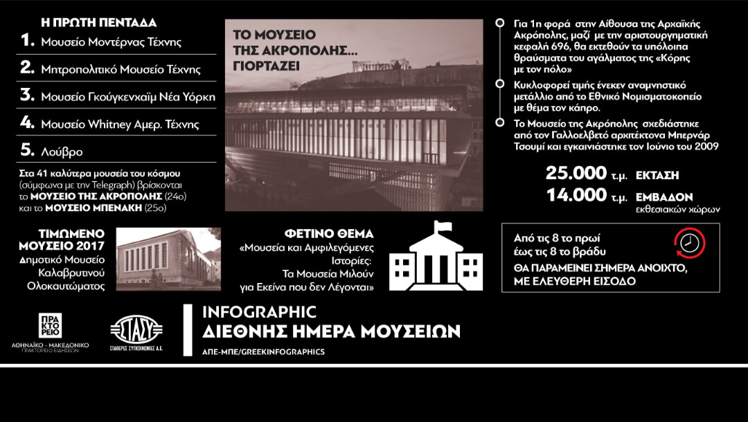 Με ελεύθερη είσοδο θα λειτουργούν τα μουσεία της χώρας σήμερα, Πέμπτη 18 Μαΐου, ημερομηνία που γιορτάζεται κάθε χρόνο η Διεθνής Ημέρα Μουσείων.