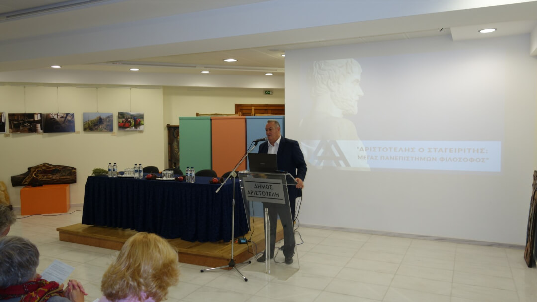 Στην εκδήλωση της Ιερισσού οι έγκριτοι εισηγητές από την Εφορεία Αρχαιοτήτων Χαλκιδικής και Αγίου Όρους και του Α.Π.Θ. τόνισαν τη βαρύτητα του έργου του Αριστοτέλη, που επηρέασε και συνεχίζει να επηρεάζει τη σύγχρονη σκέψη. Οι εισηγήσεις για τη ζωή και το έργο του φιλοσόφου εμπλουτίστηκαν με μουσικά ακούσματα της αρχαιότητας, καθώς επίσης και παρουσιάσεις των διατροφικών συνηθειών της αρχαιότητας.