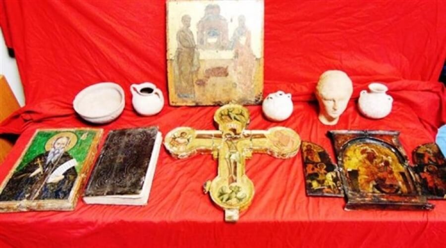 Όπως ανακοινώθηκε από τις αστυνομικές Αρχές, ο 67χρονος συνελήφθη έπειτα από κατάλληλη αξιοποίηση πληροφοριών και οργανωμένη επιχείρηση αστυνομικών του Τμήματος Πολιτιστικής Κληρονομιάς και Αρχαιοτήτων της Διεύθυνσης Ασφάλειας Θεσσαλονίκης. Σε έρευνες που πραγματοποιήθηκαν, στο σπίτι και στο κατάστημα – εργαστήριο ζωγραφικής του συλληφθέντα βρέθηκαν και κατασχέθηκαν: · Φορητή εικόνα με παράσταση των Αποστόλων Πέτρου και Παύλου (βυζαντινών χρόνων), - Φορητή εικόνα του Αγίου Αθανασίου (19ου αιώνα), - Τρίπτυχο το οποίο φέρει επιζωγράφιση (πιθανώς 19ου αιώνα), - Σταυρός από επιστύλιο τέμπλου (19ου αιώνα), - Παλαίτυπο (Πράξεις Αποστόλων), εκδόσεις Φοίνικος, εκ Βενετίας (1861) - Πήλινη γυναικεία κεφαλή (πιθανώς ελληνιστικής περιόδου) - Πήλινη χειροποίητη άωτη κεφαλή (πιθανώς ύστερης εποχής του χαλκού) - Πήλινο χειροποίητο αλάβαστρο με δικτυωτή διακόσμηση (πιθανώς ύστερης εποχής του χαλκού), Δύο πήλινοι χειροποίητοι αμφορίσκοι, ένας εκ των οποίων με γραπτή διακόσμηση (πιθανώς ύστερης εποχής του χαλκού)