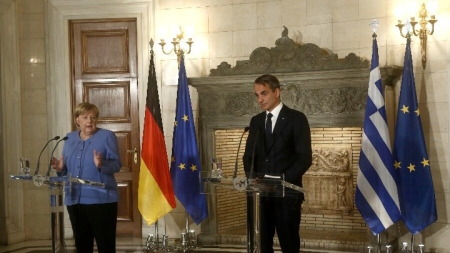 «Γνωρίζω κα Καγκελάριε τη δική σας σταθερή θέση υπέρ του διαλόγου και της εκτόνωσης των εντάσεων» συνέχισε ο Έλληνας πρωθυπουργός, αναφερόμενος στις σχέσεις με την Τουρκία. «Κι εγώ αγωνίζομαι για να κρατώ πάντα ανοικτούς τους διαύλους επικοινωνίας. Συχνά η δυτική ψυχραιμία ενθαρρύνει την τουρκική αυθαιρεσία. Είναι καιρός οι ευρωπαϊκές αρχές να μετουσιωθούν σε ευρωπαϊκή πρακτική» είπε ο Κυριάκος Μητσοτάκης και συμπλήρωσε: «Η Ελλάδα θέλει μόνο φίλους. Επιθυμεί τις καλές σχέσεις, ασφαλώς και με τους γείτονές μας, με γνώμονα το διεθνές δίκαιο και το δίκαιο της θάλασσας. Δεν ανέχεται όμως απειλές. Η θέση μου είναι κρυστάλλινη».