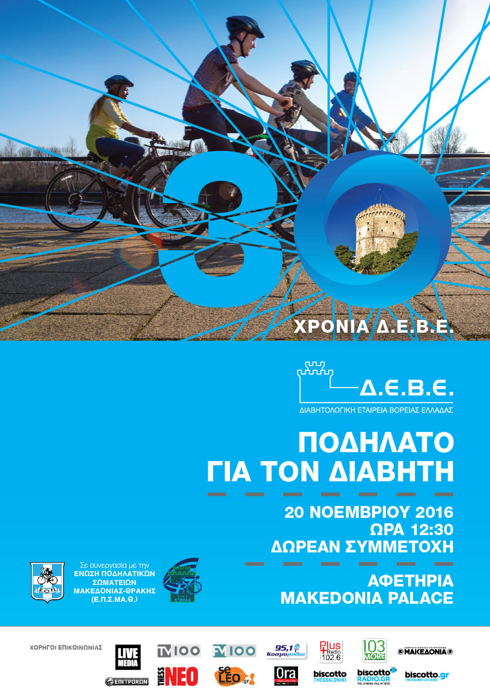 Η ΔΕΒΕ πρόκειται να διοργανώσει ποδηλατοδρομία στη νέα παραλία Θεσσαλονίκης στις 20 Νοεμβρίου 2016 και ώρα 12:30 (αφετηρία MakedoniaPalace) με στόχο την ενίσχυση του μηνύματος για την αντιμετώπιση του διαβήτη μέσα από την καθημερινή άσκηση, αφού θα έχει προηγηθεί στο ξενοδοχείο MakedoniaPalace ενημερωτική ημερίδα για άτομα με Σακχαρώδη Διαβήτη, στην οποία θα μιλήσουν αθλητές ποδηλάτες με Σακχαρώδη Διαβήτη και θα μοιραστούν την εμπειρία τους με το κοινό.
