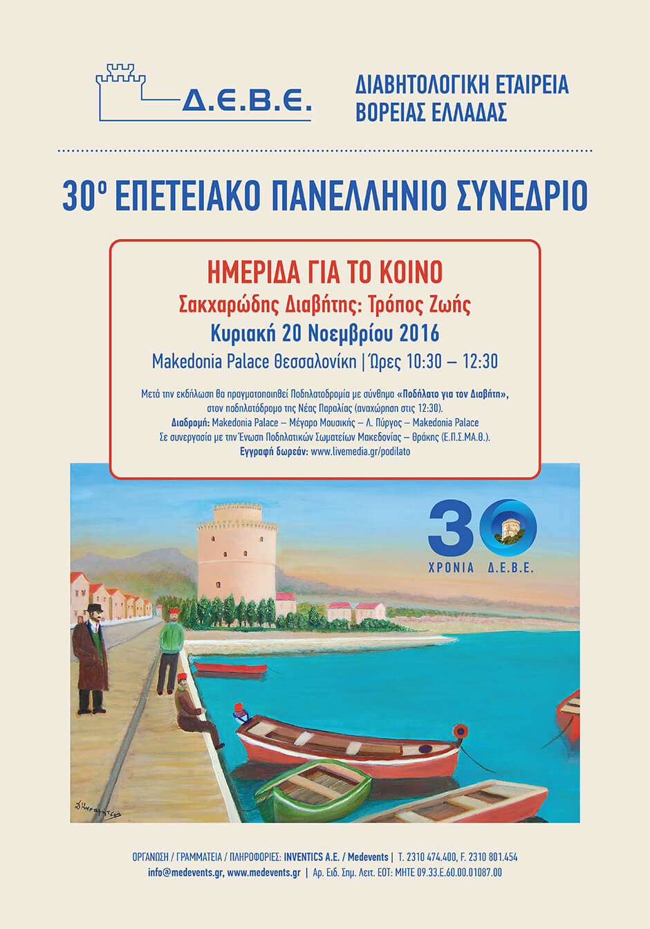 Με αφορμή τα 30 χρόνια από την ίδρυσή της, η Διαβητολογική Εταιρεία Βόρειας Ελλάδας διοργανώνει το 30ο Επετειακό Πανελλήνιο Συνέδριο διάρκειας 4 ημερών. Το φετινό Συνέδριο αποτελεί μία ιδιαίτερη στιγμή για την ιστορία και την παρουσία της Δ.Ε.Β.Ε. στον χώρο του Διαβήτη καθώς συμπληρώνονται 30 χρόνια πανελλήνιας απήχησης Συνεδρίων.