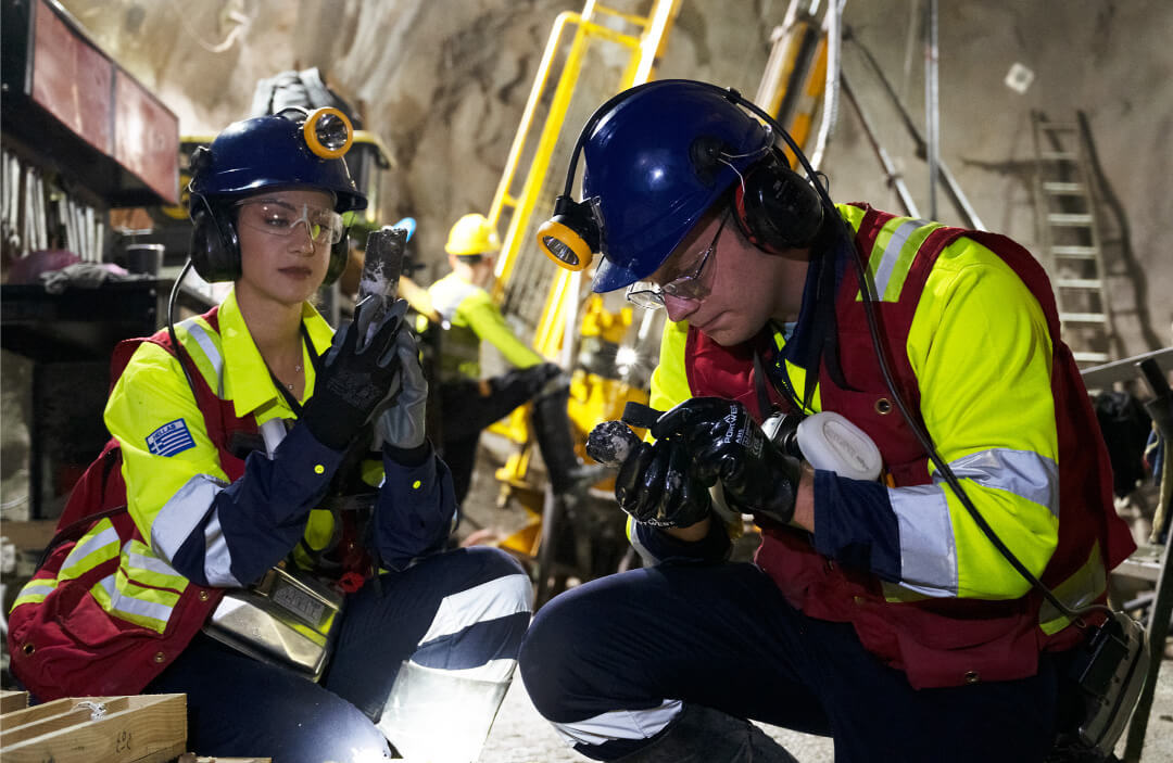 Εργαζόμενοι της Ελληνικός Χρυσός στο υπόγειο μεταλλείο Ολυμπιάδας Χαλκιδικής.