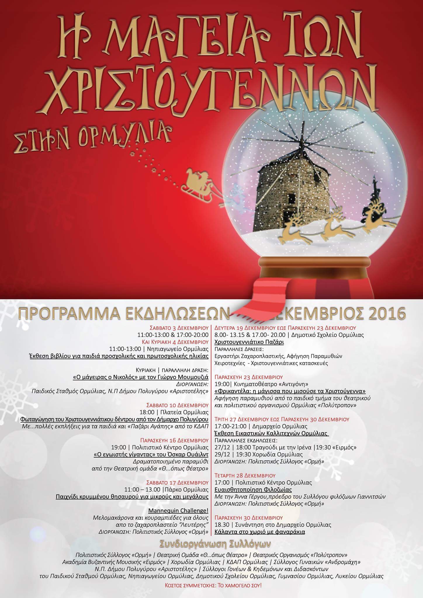 Πρόγραμμα εκδηλώσεων Δεκέμβριος 2016