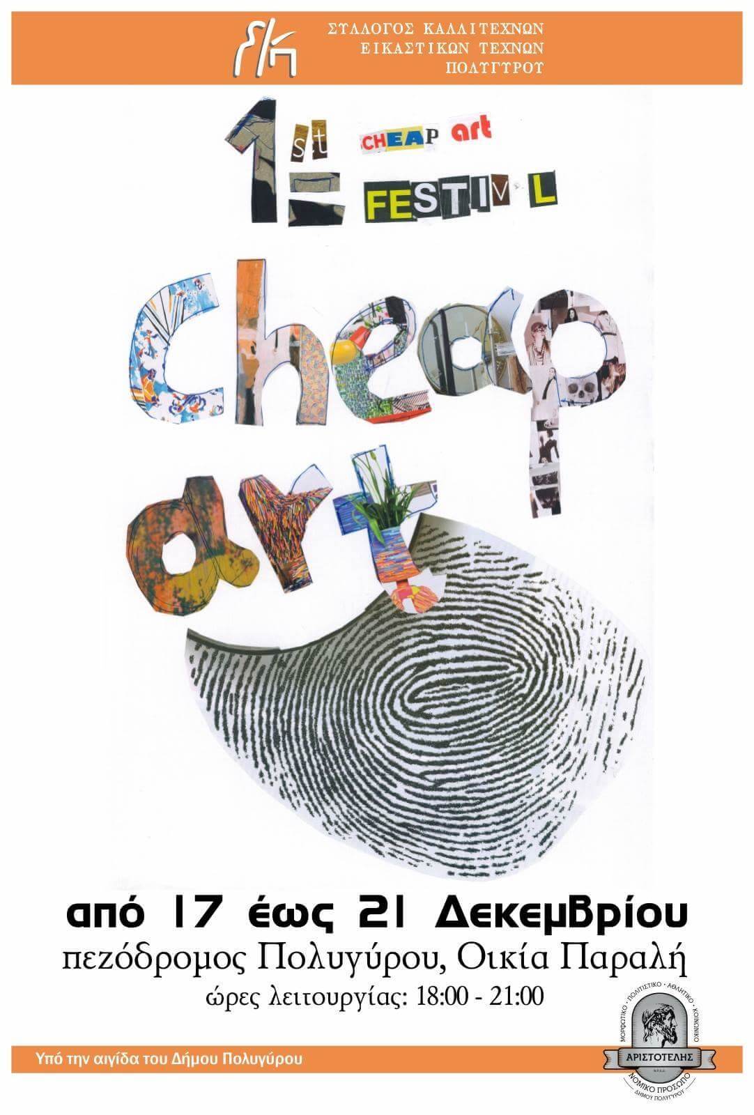 Ο Σύλλογος Καλλιτεχνών Εικαστικών Τεχνών Πολυγύρου διοργανώνει την πρώτη έκθεση cheap art στον Πολύγυρο και σας προσκαλεί να την επισκεφθείτε και να περιπλανηθείτε σε ευφάνταστες εικαστικές δημιουργίες.