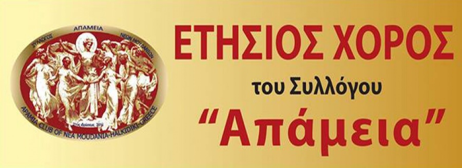 Ο Πολιτιστικός - Επιμορφωτικός Σύλλογος Ν. Μουδανιών "ΑΠΑΜΕΙΑ" διοργανώνει και φέτος τον ετήσιο χορό του το Σάββατο 14 Ιανουαρίου, ώρα 21:00, στο Κέντρο διασκέδασης Κρεμλίνο.