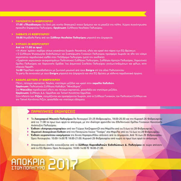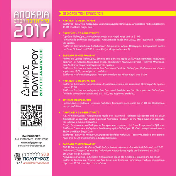 ΑΠΟΚΡΙΑ ΣΤΟΝ ΠΟΛΥΓΥΡΟ 2017 - ΠΡΟΓΡΑΜΜΑ ΕΚΔΗΛΩΣΕΩΝ