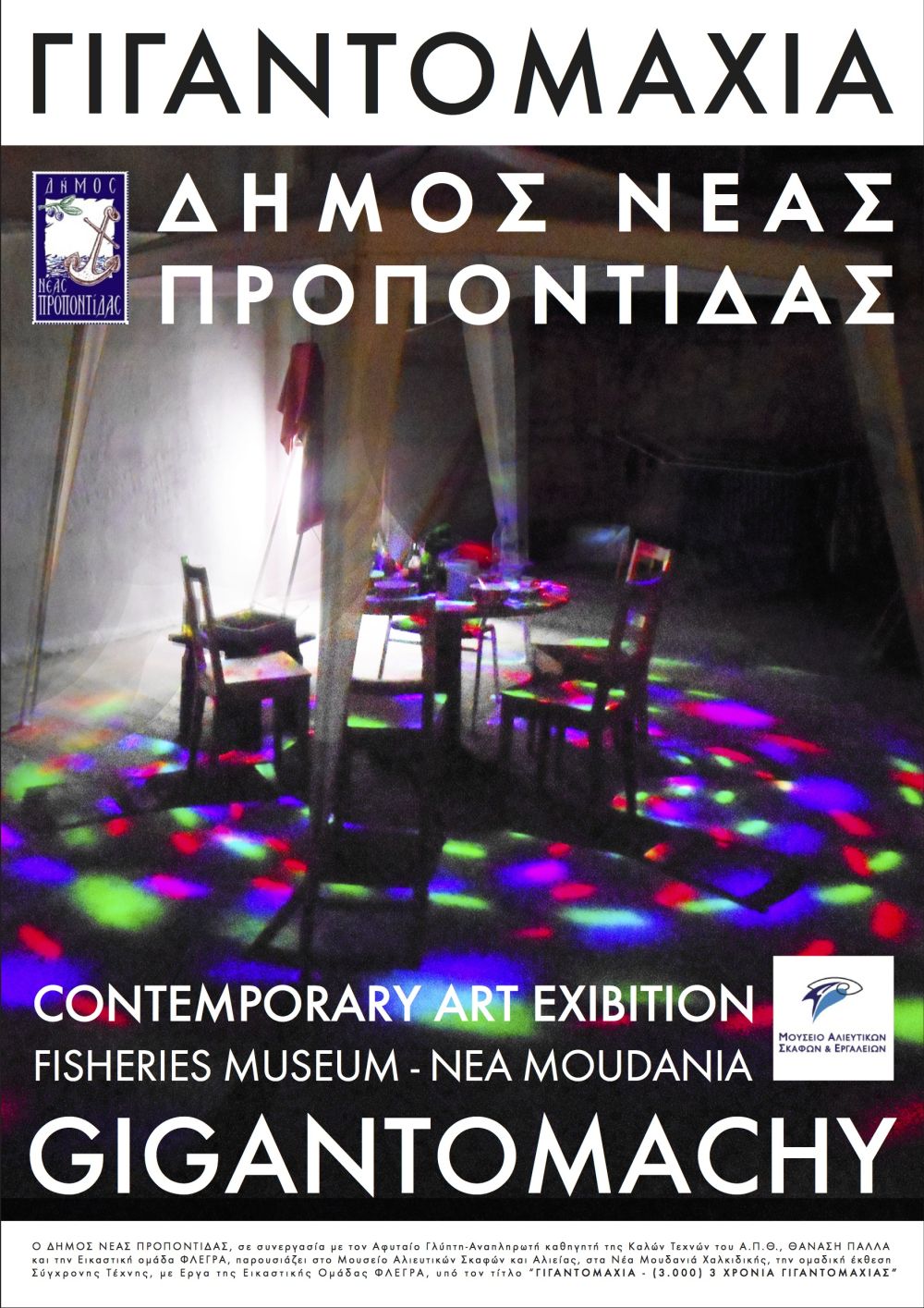 Η Εικαστική Έκθεση Σύγχρονης Τέχνης “ΓΙΓΑΝΤΟΜΑΧΙΑ” φιλοξενείται από τον Ιούλιο έως και τον Δεκέμβριο του 2017 στους χώρους του Μουσείου Αλιευτικών Σκαφών και Εργαλείων του Δήμου Νέας Προποντίδας στα Νέα Μουδανιά Χαλκιδικής, έτσι ώστε να είναι όλο το καλοκαίρι στην διάθεση όλων των Επισκεπτών της όμορφης και Φιλόξενης Χαλκιδικής μας και στην συνέχεια όλων των Σχολείων της Α΄βάθμιας και Β΄βάθμιας εκπαίδευσης του Νομού μας.