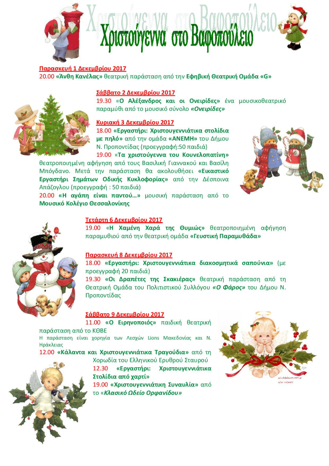Για τον μήνα Δεκέμβριο, ο Δήμος Ν.Προποντίδας, συμμετέχει ενεργά στο πρόγραμμα των Χριστουγεννιάτικων εκδηλώσεων του Βαφοπούλειου Πνευματικού Κέντρου.