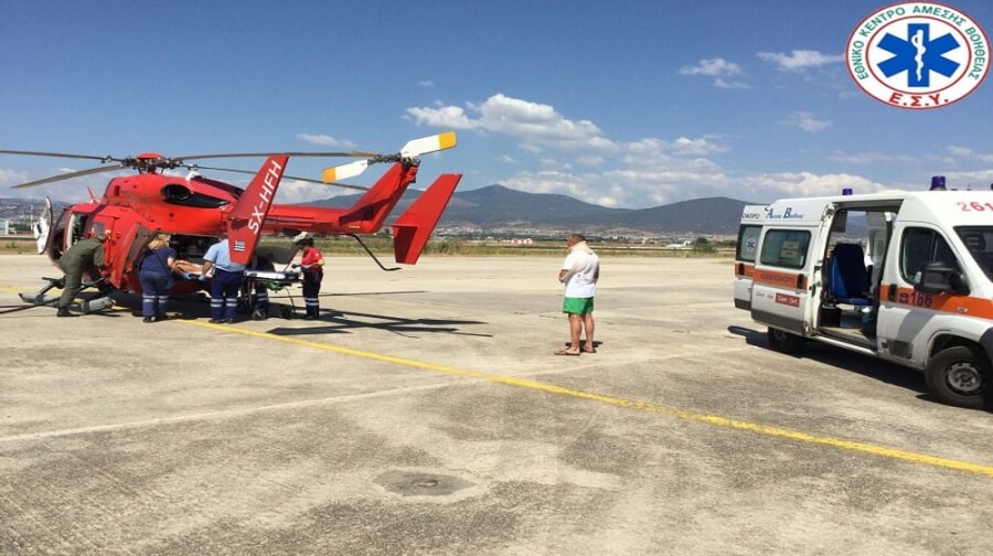 Αεροδιακομιδή 70χρονης με εγκεφαλική αιμορραγία απο τον Πολύγυρο στη Θεσσαλονίκη