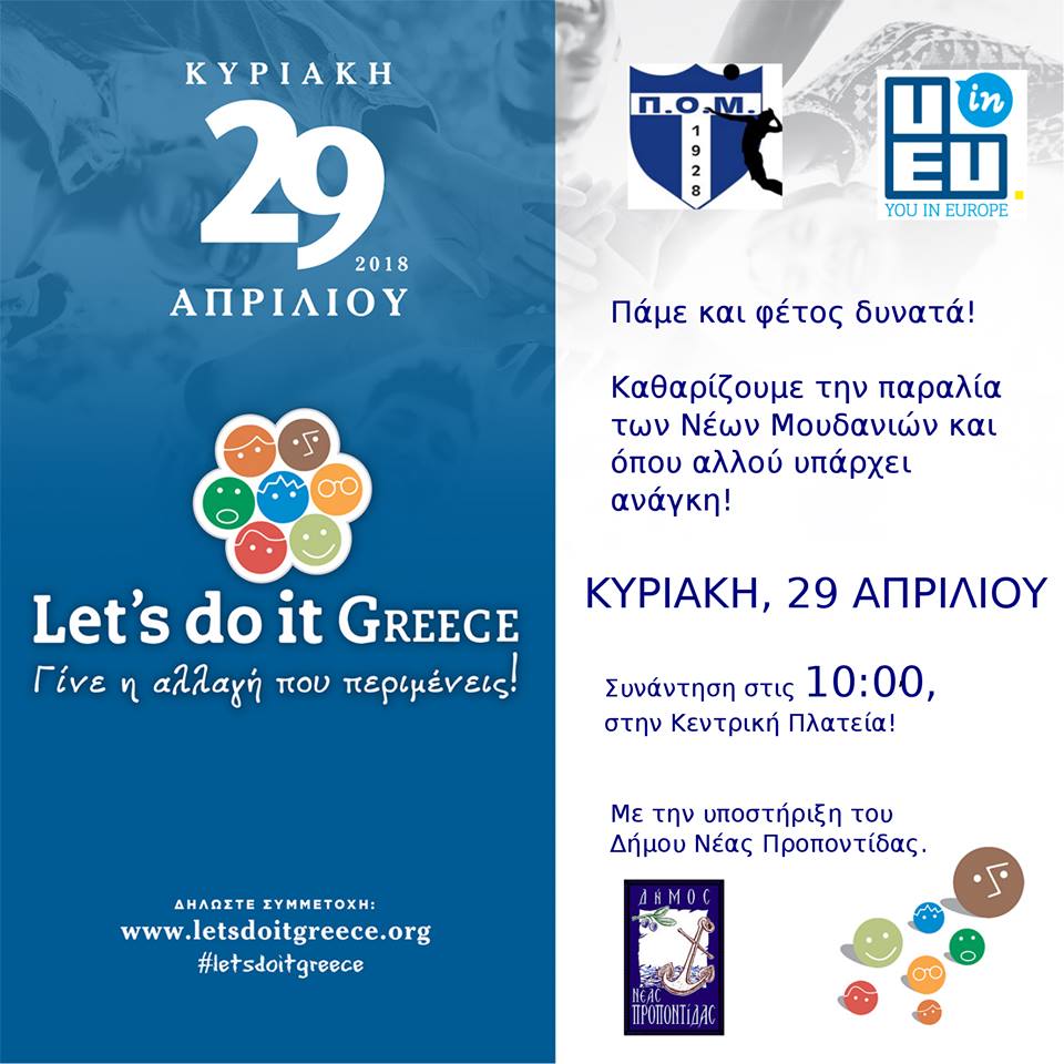 Ο Δήμος Νέας Προποντίδας συμμετέχει και υποστηρίζει τον καθαρισμό της παραλίας Ν.Μουδανιών μαζί με την ομάδα Βόλεϋ του Π.Ο.Μ. και την Α.Μ.Κ.Ε. You in Europe, στο πλαίσιο του Let’s do it Greece.