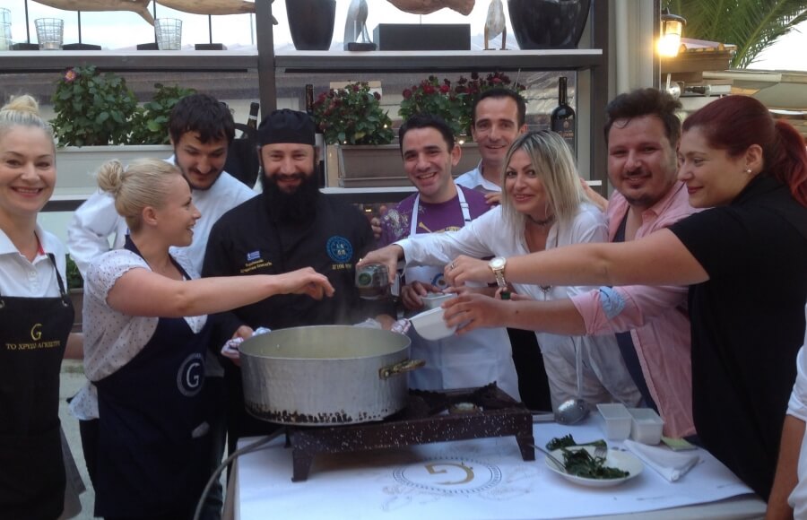 Κατά τη διάρκεια του μοναστηριακού δείπνου, που παρατέθηκε στο Restaurant Elia του Alexandros Palace Suites & Hotel ο chef Στέφανος Ιωαννίδης παρουσίασε προτάσεις που «ανακάτεψαν» στην κυριολεξία την αθωνική παράδοση με τη μεσογειακή γαστρονομική κληρονομιά.