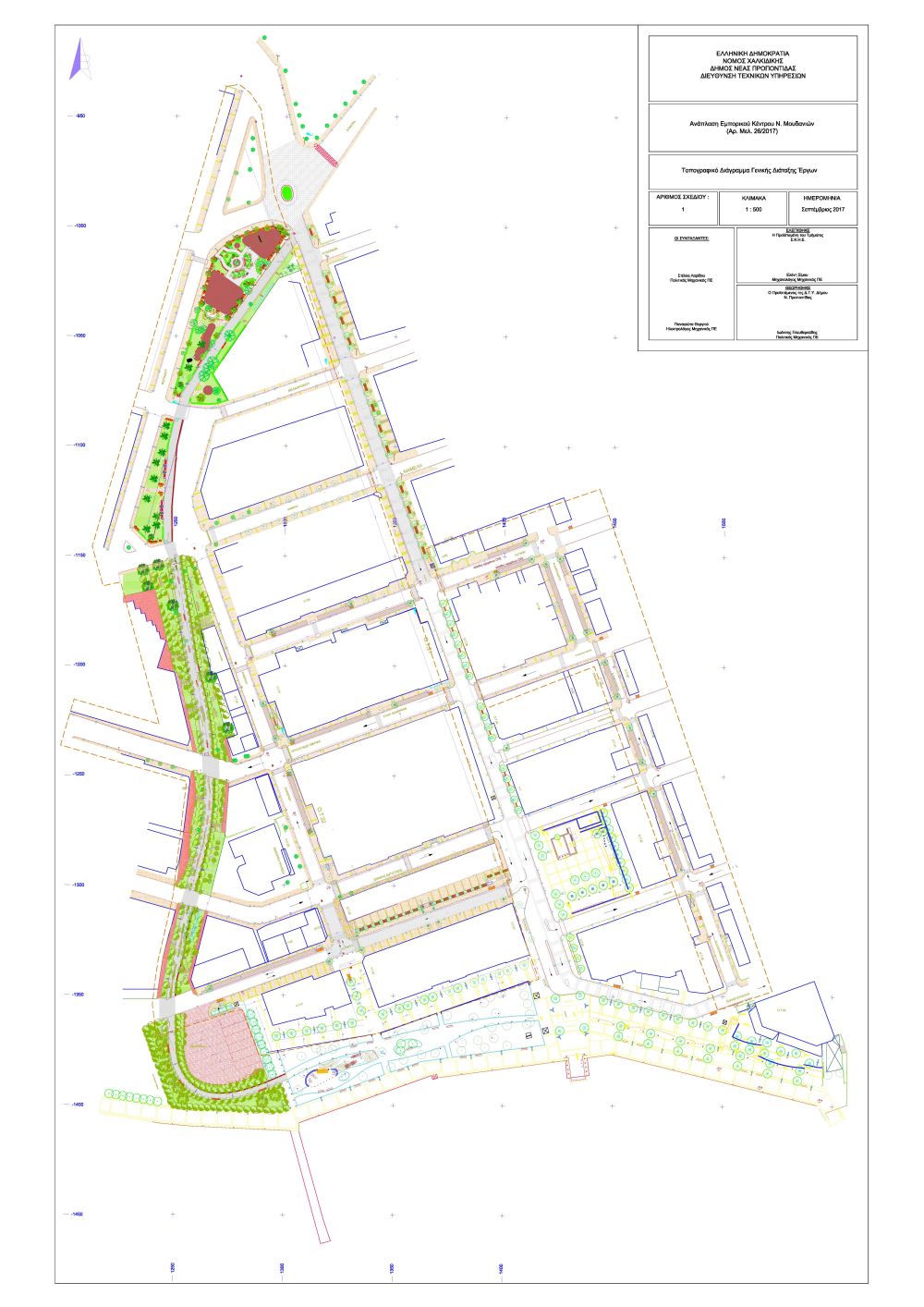 Αναλυτικότερα το έργο της ανάπλασης του εμπορικού κέντρων των Ν. Μουδανιών περιλαμβάνει: