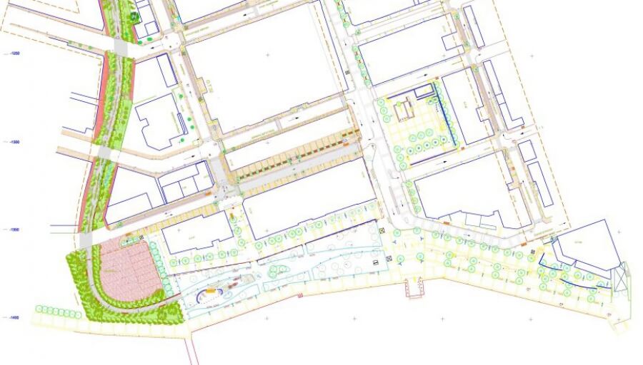 - Την αναδιάταξη - ανακατασκευή των πεζοδρομίων με νέες χαράξεις, δαπεδοστρώσεις, ράμπες για ΑΜΕΑ, τοποθέτηση προστατευτικών κολόνων μικρού ύψους κλπ.
