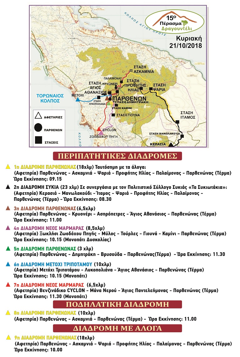 Αυτή η περιβαλλοντική εκδήλωση αποτελεί πλέον θεσμό για τη Σιθωνία και διοργανώνεται από τον Πολιτιστικό Σύλλογο «Παρθενών», τη Δημοτική Κοινωφελή Επιχείρηση Σιθωνίας υπό την αιγίδα του Δήμου Σιθωνίας.