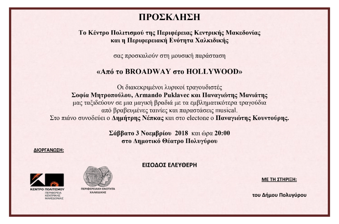 ΑΠΟ ΤΟ BROADWAY ΣΤΟ HOLLYWOOD| ΔΗΜΟΤΙΚΟ ΘΕΑΤΡΟ ΠΟΛΥΓΥΡΟΥ