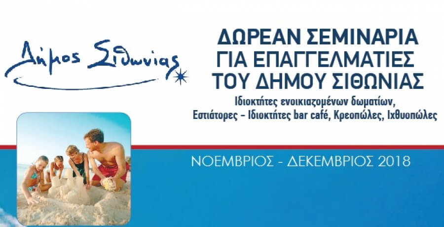 Δωρεάν επιμορφωτικά σεμινάρια για ιδιοκτήτες ενοικιαζομένων δωματίων, bar cafe, εστιάτορες, κρεοπώλες και ιχθυοπώλες θα προσφέρει ο Δήμος Σιθωνίας, στο πλαίσιο της στρατηγικής ανάπτυξης του τουρισμού στην περιοχή και σε συνεργασία με τους τοπικούς επαγγελματικούς συλλόγους.