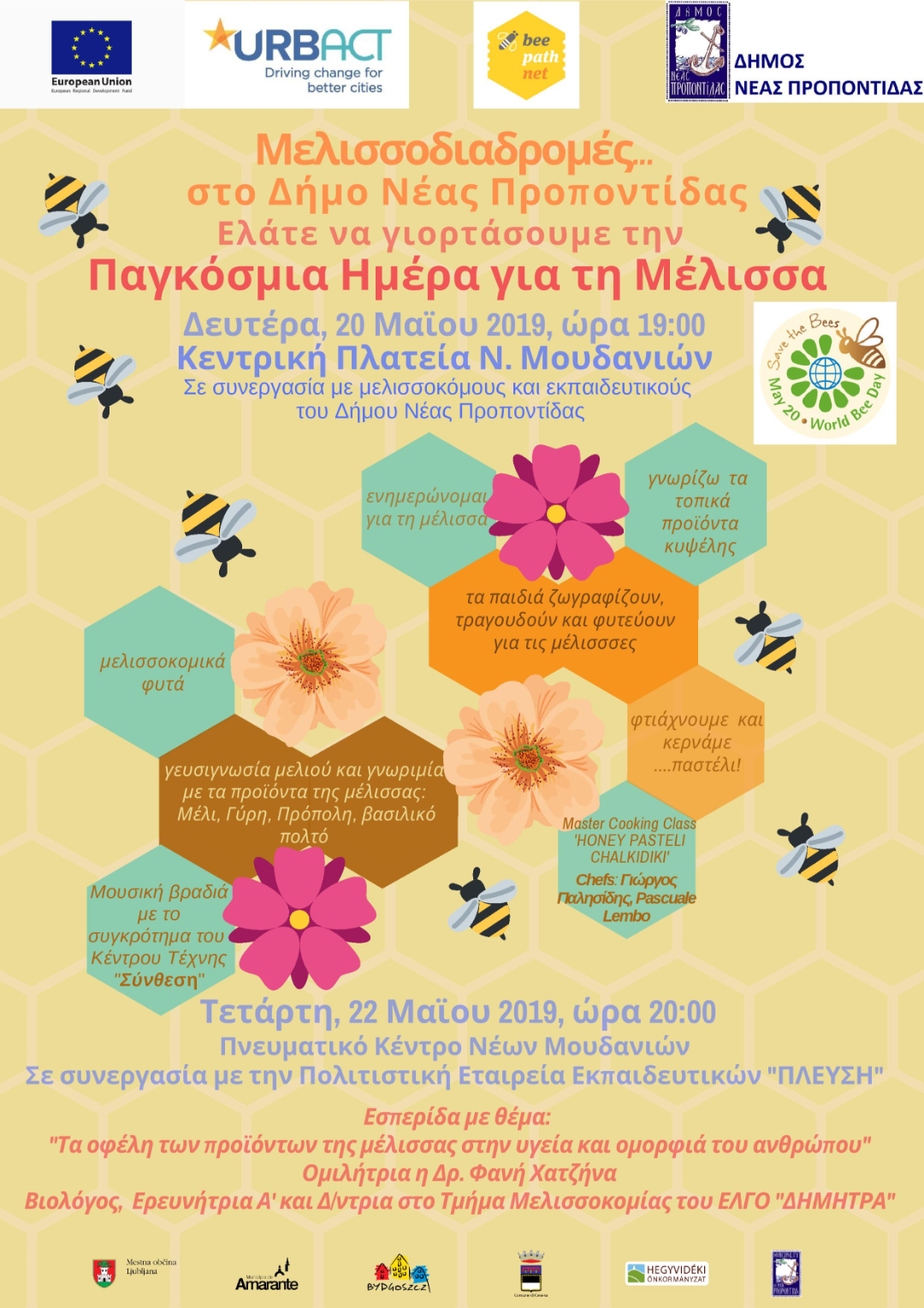 Ο Δήμος Νέας Προποντίδας, στο πλαίσιο της συμμετοχής του στο πρόγραμμα URBACT “BeePathNet” και με αφορμή την 20η Μαΐου που έχει καθιερωθεί ως Παγκόσμια Ημέρα Μέλισσας, διοργανώνει τις εξής εκδηλώσεις: