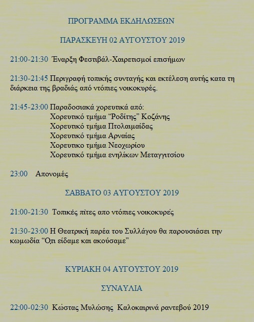Κατά τη διάρκεια του 3ημέρου θα πραγματοποιηθούν μουσικοχορευτικές εκδηλώσεις, γευστικές δοκιμές καθώς και ιδιαίτερες γαστρονομικές γεύσεις από ντόπιους αναδεικνύοντας έτσι και τη γευστική ταυτότητα του τόπου.