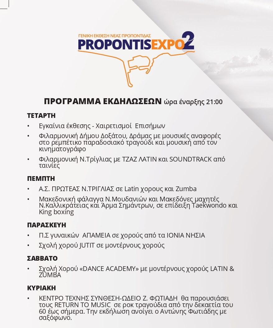 Ξεκινάει σήμερα η Γενική Έκθεση Νέας Προποντίδας 2019 στην προβλήτα των Νέων Μουδανιών και θα διαρκέσει έως και την Κυριακή 11 Αυγούστου 2019.
