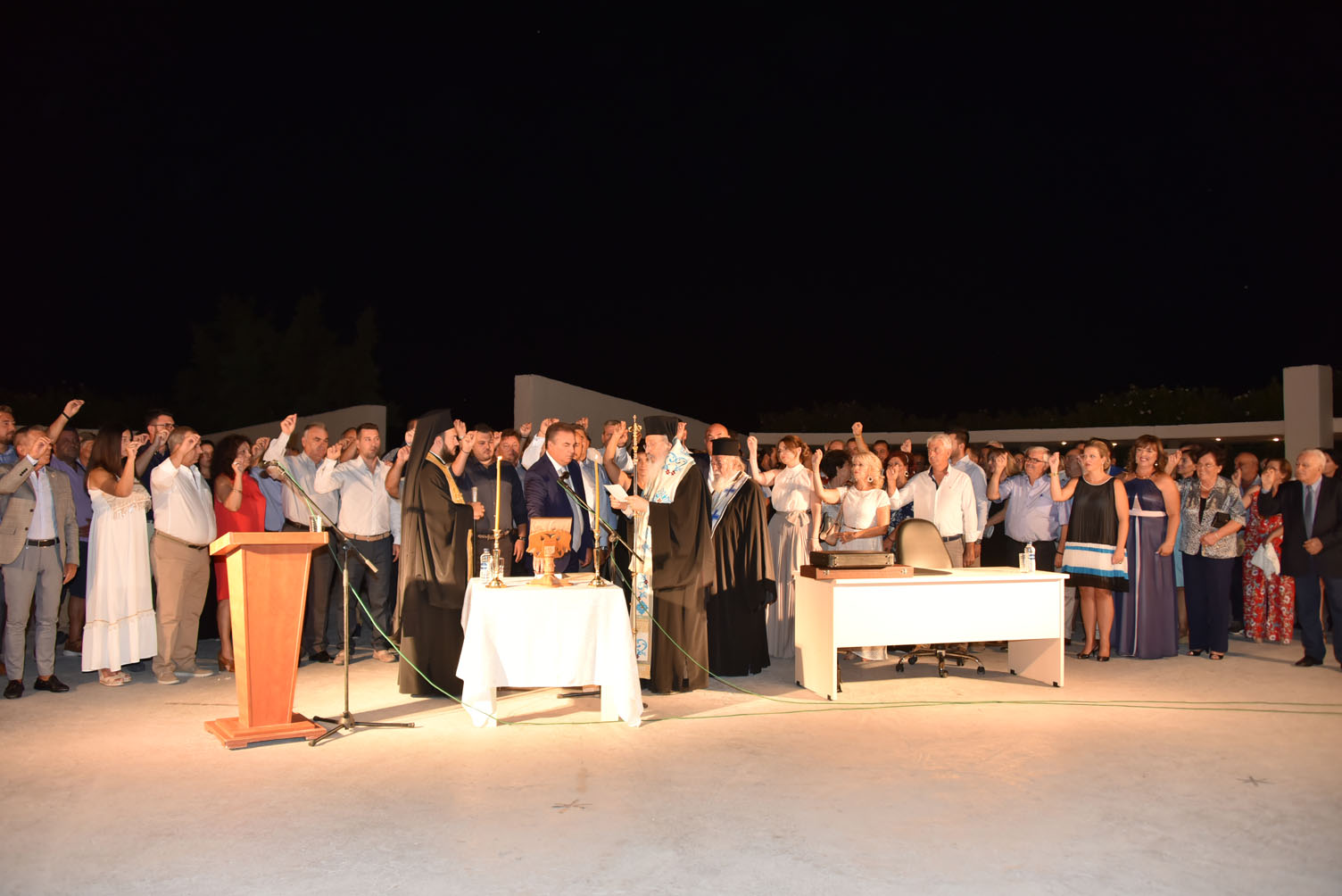 Την ευλογία της εκκλησίας μετέφερε ο Σεβασμιότατος Μητροπολίτης Κασσανδρείας κ. Νικόδημος, ο οποίος τέλεσε τη διαδικασία θρησκευτικού όρκου. Την τελετή τίμησαν με την παρουσία τους οι βουλευτές Γιώργος Βαγιωνάς και Απόστολος Πάνας, ο Αστυνομικός Διευθυντής Χαλκιδικής Γεώργιος Παπαδόπουλος, η Περιφερειακή Σύμβουλος Κατερίνα Ζωγράφου, ο Πρόεδρος της ΑΝ.ΕΤ.ΧΑ Γιώργος Πασαλής, ο Πρόεδρος της Πανελλήνιας Ομοσπονδίας Ξενοδόχων Γρηγόριος Τάσιος, οι πρώην βουλευτές Βλάχου Σωτηρία και Καρανάσιος Ευθύμιος, επίσημοι προσκεκλημένοι και πλήθος κόσμου.