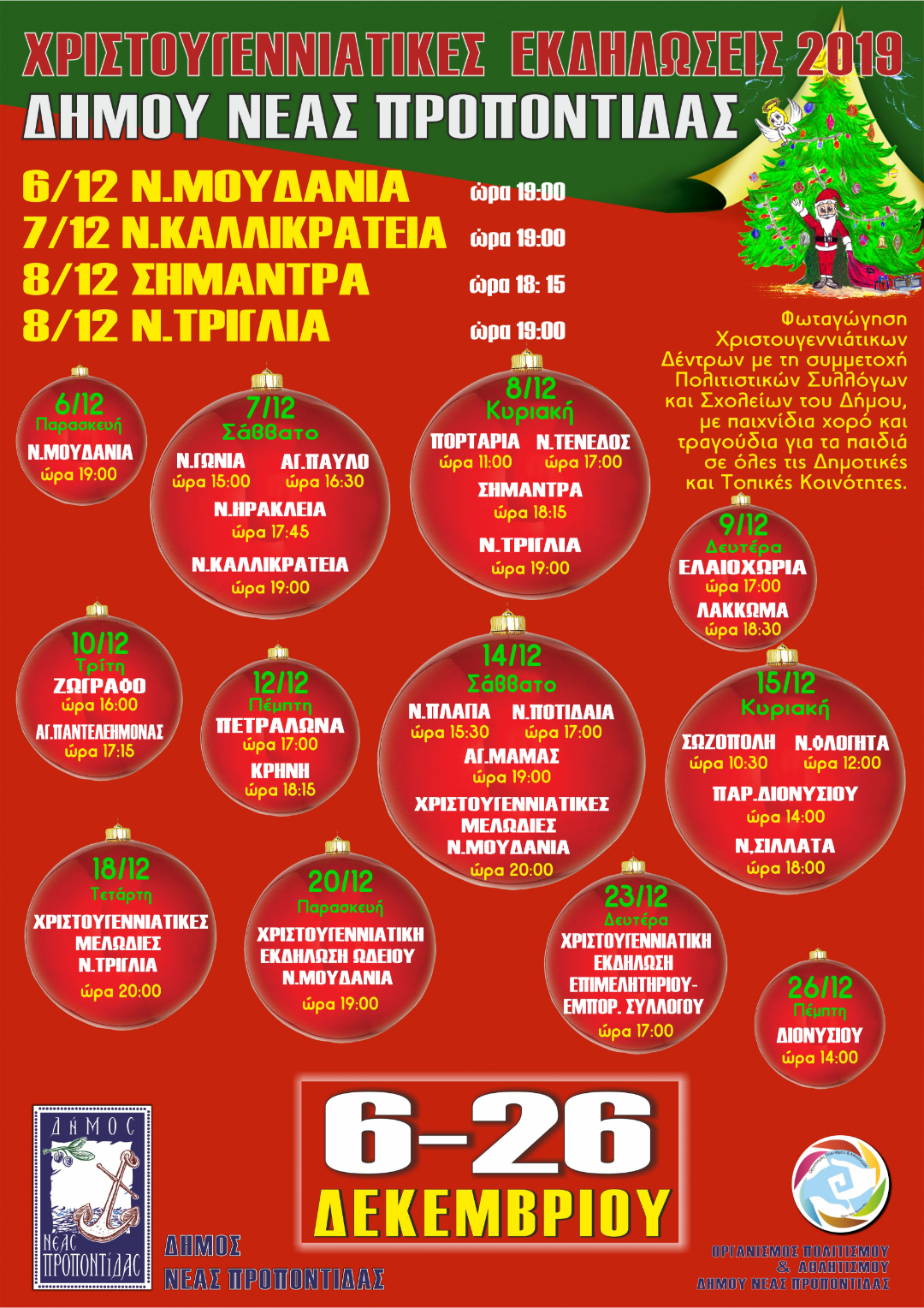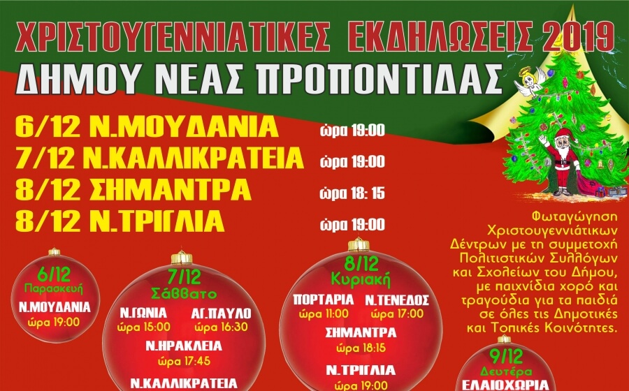 Χριστουγεννιάτικες εκδηλώσεις 2019 - Δήμου Νέας Προποντίδας