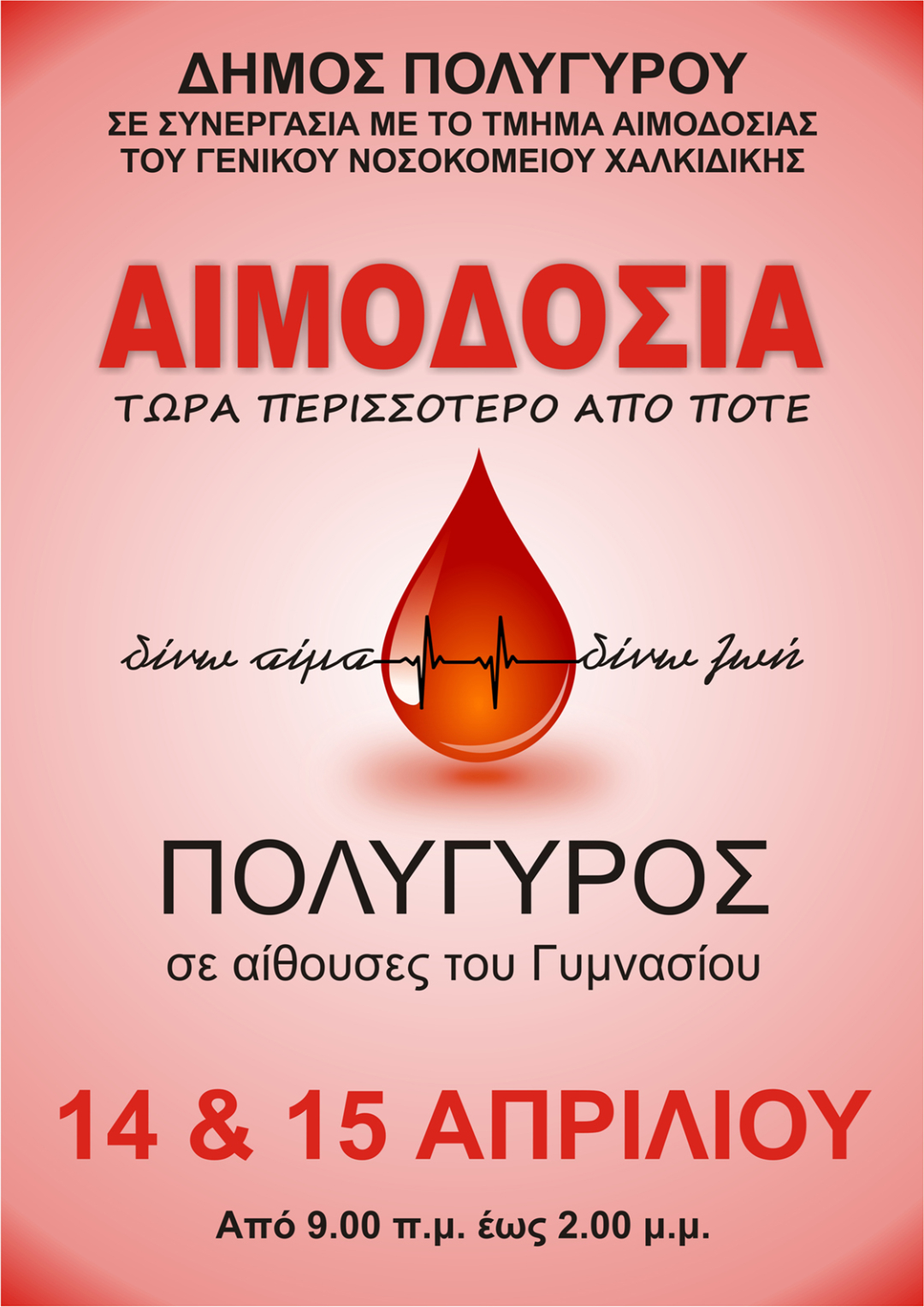 Αιμοδοσία στον Πολύγυρο 14 και 15 Απριλίου