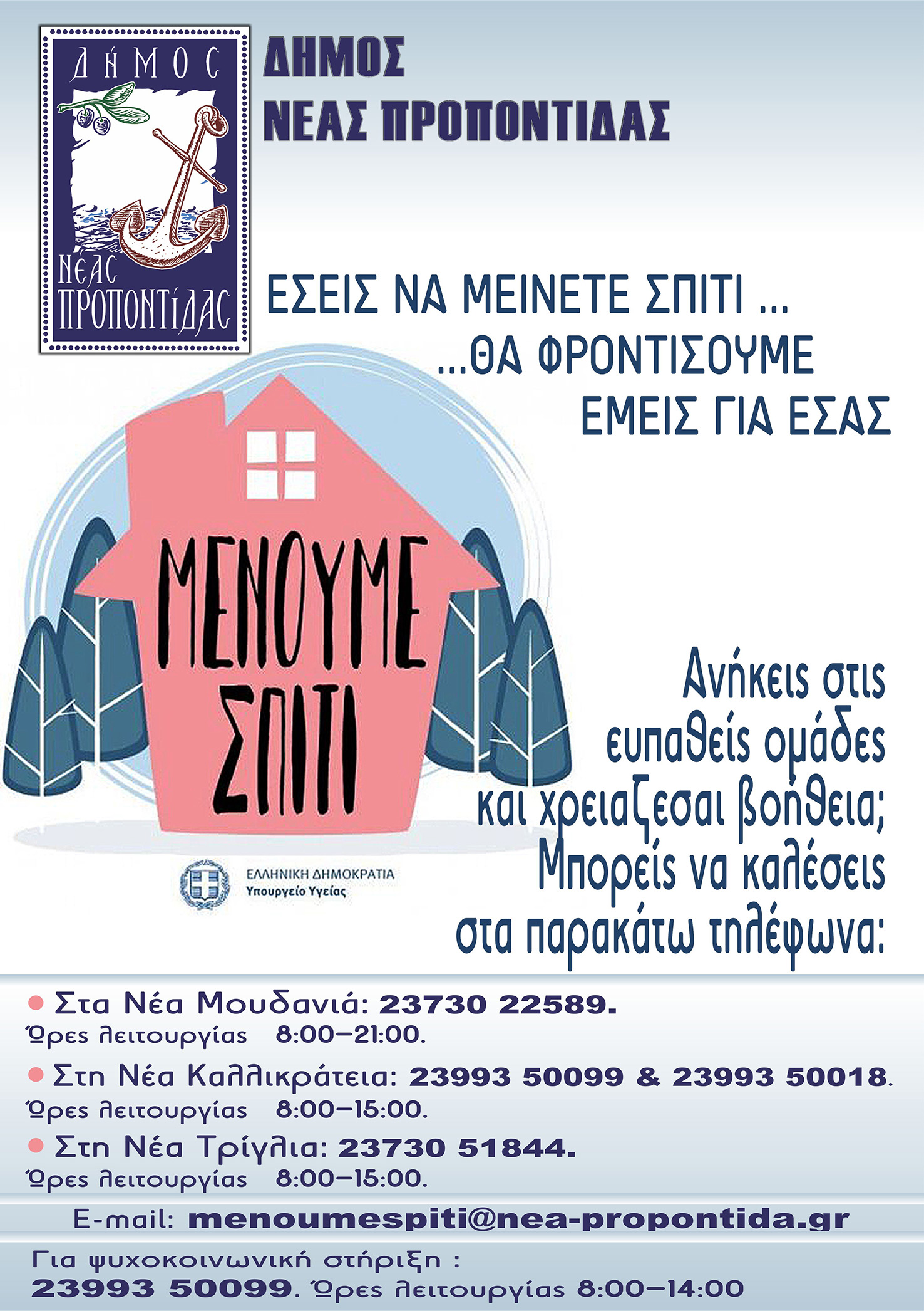 Δήμος Ν. Προποντίδας: «Εσείς να μείνετε σπίτι…θα φροντίσουμε εμείς για εσάς»!