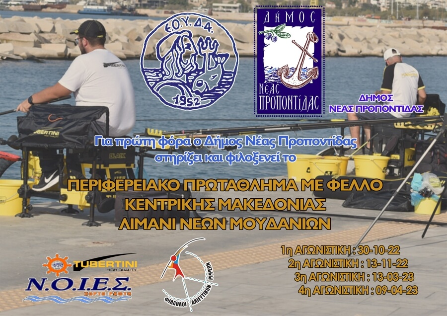 Ο Ναυταθλητικός Όμιλος Ιδιοκτητών Ερασιτεχνικών Σκαφών «Ν.Ο.Ι.Ε.Σ. TUBERTINI ΠΟΡΤΟ ΡΑΦΤΗ, ο Αθλητικός σύλλογος «ΤΙΜΑΡΧΟΣ ΦΑΡ» ΦΙΛΟΙ ΑΛΙΕΥΤΙΚΩΝ ΡΙΨΕΩΝ μετά από ανάθεση της ΕΛΛΗΝΙΚΗΣ ΟΜΟΣΠΟΝΔΙΑΣ ΥΠΟΒΡΥΧΙΑΣ ΔΡΑΣΤΗΡΙΟΤΗΤΑΣ & ΑΘΛΗΤΙΚΗΣ ΑΛΙΕΙΑΣ (Ε.Ο.Υ.Δ.Α.) σε συνεργασία με τον Δήμο Νέας Προποντίδας διοργανώνουν τον 1ο - 2ο - 3ο & 4ο περιφερειακό διασυλλογικό αγώνα αλιείας με φελλό από λιμενικές εγκαταστάσεις για το Πρωτάθλημα αγωνιστικού έτους 2022-2023 στο λιμάνι των Νέων Μουδανιών.