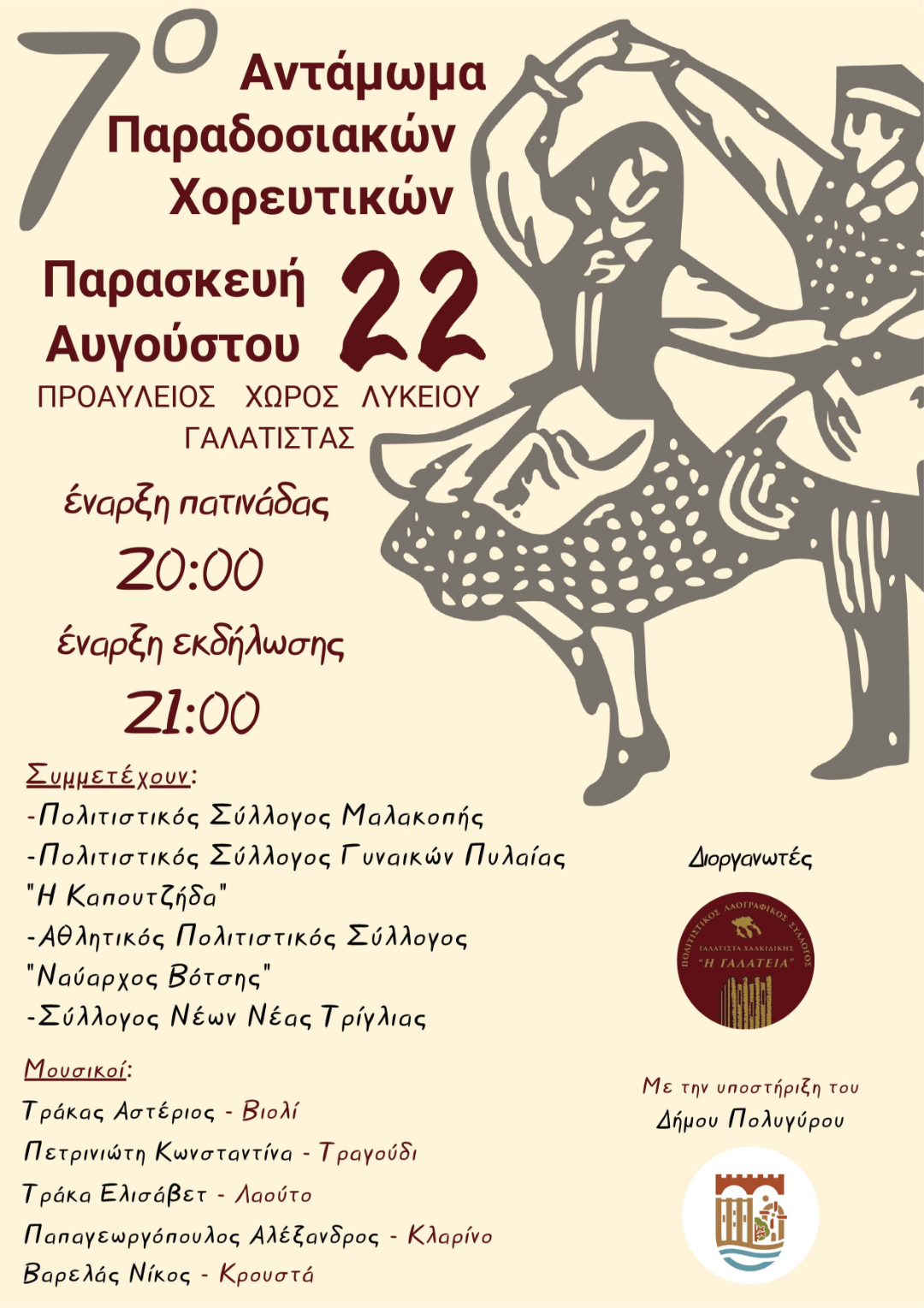 Δήμος Πολυγύρου: Μουσική Παράσταση και 7ο Χορευτικό Αντάμωμα στη Γαλάτιστα