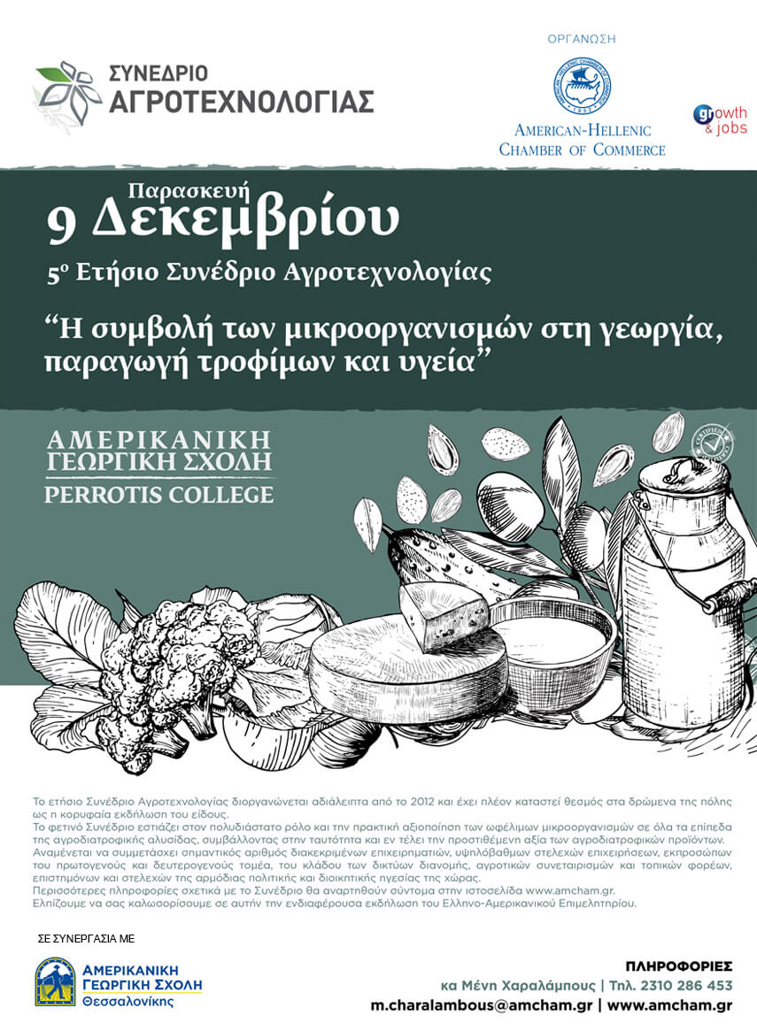 Οι εξελίξεις στο νέο πεδίο της μεταγονιδιωματικής, που φανέρωσαν τον πλούτο των λεγόμενων φιλικών (προβιοτικών μικροβίων) στη φύση, στα εδάφη, στα νερά και τους βυθούς των θαλασσών, αλλά και στα φυτά, τα ζώα και τον άνθρωπο με τις εφαρμογές τους στη γεωργία, την κτηνοτροφία και την παραγωγή προβιοτικών τροφίμων, την προστασία της υγείας και την πρόληψη ασθενειών, ήταν το αντικείμενο του φετινού 5ου Συνεδρίου Αγροτεχνολογίας, που διοργάνωσε το Ελληνο-Αμερικάνικο Επιμελητήριο στο Συνεδριακό Κέντρο του Κολεγίου Περωτής της Αμερικάνικης Γεωργικής Σχολής.