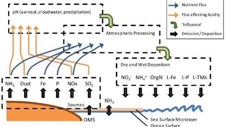 Η ατμοσφαιρική ρύπανση επηρεάζει το οικοσύστημα των ωκεανών. Είναι η πρώτη μελέτη που εξέτασε τον αντίκτυπο της ρύπανσης στη μεταφορά θρεπτικών ουσιών στον ωκεανό, δείχνοντας ότι ο τρόπος παροχής θρεπτικών ουσιών επηρεάζει την παραγωγικότητα του ωκεανού και την ικανότητά του να απορροφά CO2 από την ατμόσφαιρα.