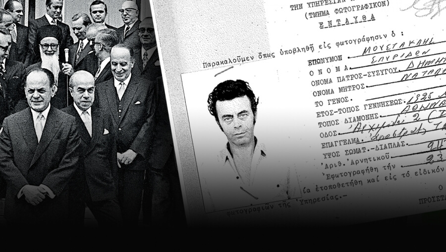 Με απόρρητο και κατεπείγον έγγραφο η Διεύθυνση Αλλοδαπών του υπουργείου Δημόσιας Τάξης στις 22 Οκτωβρίου 1968 στέλνει προς τα σημεία ελέγχου διαβατηρίων μια μακροσκελή λίστα με απόστρατους και απότακτους αξιωματικούς των Ενόπλων Δυνάμεων και των Σωμάτων Ασφαλείας της χώρας, στους οποίους απαγορεύεται η έξοδος από τη χώρα. Στην 97η θέση του καταλόγου αυτού συμπεριλαμβάνεται και το όνομα «Ταγ/ρχης πεζ. ΜΟΥΣΤΑΚΛΗΣ ΣΠΥΡΙΔΩΝ του Δημ και της Ναταλίας, γεν.το 1925, ταγμ/ρχης ε.α. Αρχιμήδους 2».