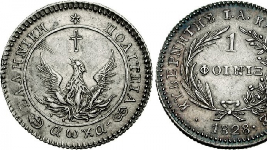 Η επόμενη απόφαση περί κοπής εθνικού νομίσματος είναι πλέον του κυβερνήτη της Ελλάδος, Ιωάννη Καποδίστρια. Σαν από διάθεση να ξορκίσει την «κακοδαιμονία» ενός νομίσματος που δεν κατάφερε ποτέ να κυκλοφορήσει, αλλά κυρίως σαν από ανάγκη να μπολιάσει με δύναμη τον ταλαιπωρημένο λαό που δεν του έφταναν οι αιώνες της υποδούλωσής του και είχε τώρα να αντιμετωπίσει τις εσωτερικές φατρίες και τη διχόνοια, ο Καποδίστριας εκτοπίζει τη Δραχμή από τα σχέδιά του και προτιμά τον συμβολισμό του Φοίνικα, που του προτείνει ο τραπεζίτης και πολιτικός Αλέξανδρος Κοντόσταυλος. Έτσι θα λέγεται το νόμισμα της Ελλάδας και θα απεικονίζει το πουλί, στο οποίο αναφέρθηκε για πρώτη φορά ο Ηρόδοτος στα Ιστορικά του: «Υπάρχει και ένα ιερό πουλί, που τ᾽ όνομά του είναι φοίνιξ [...] Και πηγαίνει λένε, όταν πεθάνει ο πατέρας του, κάθε 500 χρόνια στην Αίγυπτο, στο ιερό του Ηλίου [...] Τα φτερά του είναι άλλα χρυσωπά, άλλα κόκκινα. Στην εμφάνιση και το μέγεθος μοιάζει πολύ με τον αετό. Και λένε ότι ξεκινάει από την Αραβία φέρνοντας στο ιερό του Ηλίου τον πατέρα του τυλιγμένο μέσα σε σμύρνα και τον θάβει εκεί στο ιερό [...] Και τον φέρνει με τον εξής τρόπο: πρώτα φτιάχνει από σμύρνα ένα αυγό τόσο βαρύ όσο να μπορεί να το σηκώσει, και ύστερα σχηματίζει στο αυγό ένα κοίλωμα, βάζει μέσα τον πατέρα του, γεμίζει με άλλη σμύρνα το κοίλωμα και το πηγαίνει στο ιερό [...] Κι εκεί καίγεται. Και γίνεται στάχτη από τη φωτιά του Ήλιου και ξαναγίνεται από την αρχή».