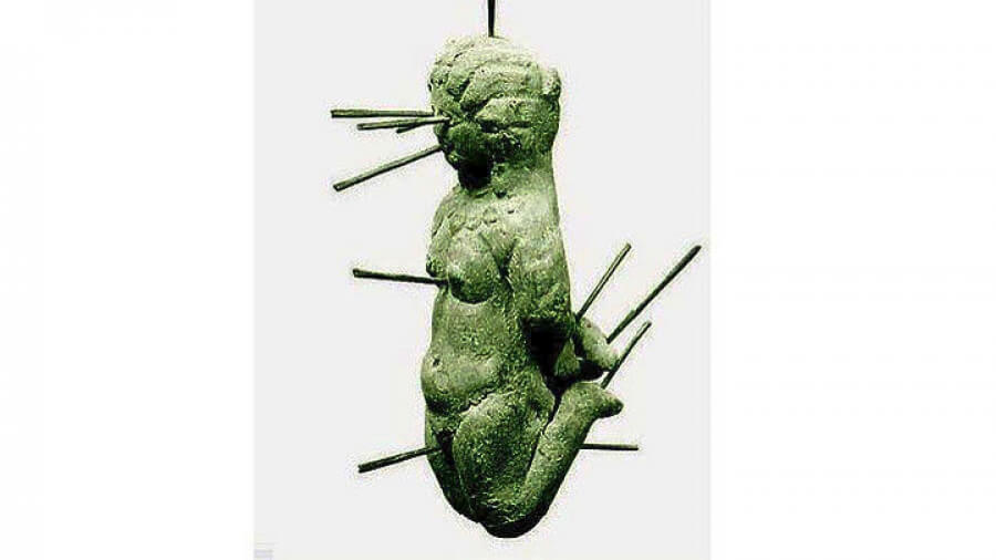 Κατάρες, αρές, κατάδεσμοι και αναθεματίσματα με ανατομικές λεπτομέρειες, επίκληση φλογερών πυρετών και παθών, ειδώλια διατρυπημένα σε 13 (!) σημεία του σώματος (βουντού ή... βελονισμός για την ίαση των πασχόντων από φλογερό έρωτα;), μαγικά κείμενα με κατάρες που γράφονταν σε μολύβδινα πινακίδια, από την κλασική εποχή ως τα βυζαντινά χρόνια και τη σύγχρονη εποχή, ανέσυρε απο... τάφους, πηγάδια και ιερά χθόνιων θεοτήτων στη... Νεμέα, την Κω, την Αττική, την Κρήτη, αλλά και ολόκληρη τη λεκάνη της Μεσογείου, η εισηγήτρια του επιστημονικού (αρχαιολογικού) συνεδρίου, χθες βράδυ, στο αμφιθέατρο του μουσείου της αρχαίας αγοράς, στη Θεσσαλονίκη.