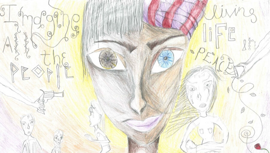 "Ήθελα να εκφράσω το γεγονός ότι είμαστε όλοι ίσοι και πρέπει να ζήσουμε με ειρήνη" εξήγησε η μαθήτρια η οποία συμπεριέλαβε στη ζωγραφιά της τους διαχρονικούς στίχους του John Lennon ,"imagine all the people living life in peace".