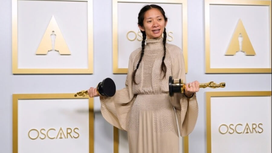 Η 39χρονη Κινέζα σκηνοθέτις είναι η δεύτερη μόλις γυναίκα που κερδίζει στην κατηγορία σκηνοθεσίας (μετά την Κάθριν Μπίγκελοου και το «Hurt Locker») και η πρώτη γυναίκα ασιατικής καταγωγής. Η Ζάο, η οποία έχει κερδίσει για το «Nomadland» Χρυσή Σφαίρα, BAFTA, Indies και ακόμη 55 βραβεία σκηνοθεσίας στις κριτικές ενώσεις της Αμερικής, δήλωσε όταν παρέλαβε το Όσκαρ Καλύτερης Ταινίας: «Εκ μέρους των παραγωγών μου, ευχαριστούμε την Ακαδημία και τους συνυποψηφίους μας και όσους μας βοήθησαν για να γίνει αυτή η ταινία, τη συγγραφέα του βιβλίου στο οποίο βασιστήκαμε, όλους όσοι έπαιξαν, όσους βρήκαμε στον δρόμο και μας δίδαξαν τι σημαίνει πραγματική καλοσύνη». Μετά την απονομή του βραβείου σκηνοθεσίας ανέφερε: «Σκέφτομαι πολύ τελευταία τι να κάνω όταν τα πράγματα δεν θα είναι πια τόσο καλά. Όταν μεγάλωνα στην Κίνα, λέγαμε κάτι ποιηματάκια με τον πατέρα μου. Η πρώτη φράση που θυμάμαι έλεγε "οι άνθρωποι είναι εκ γενετής καλοί". Αυτό έχει επίδραση σε μένα μέχρι και σήμερα. Έβρισκα πάντα καλοσύνη στους ανθρώπους που συναντούσα. Αυτό το βραβείο είναι για όποιον έχει την πίστη και το κουράγιο να παραμένουμε καλοί στον εαυτό μας και στους άλλους, και το αφιερώνω σε όσους με ενέπνευσαν».